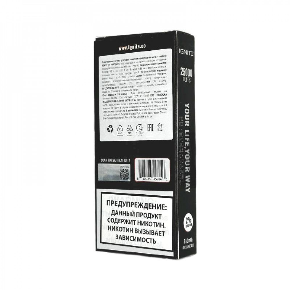 • Электронная сигарета Ignite V250 Black 25000 - Pineapple Ice (Ледяной ананас)